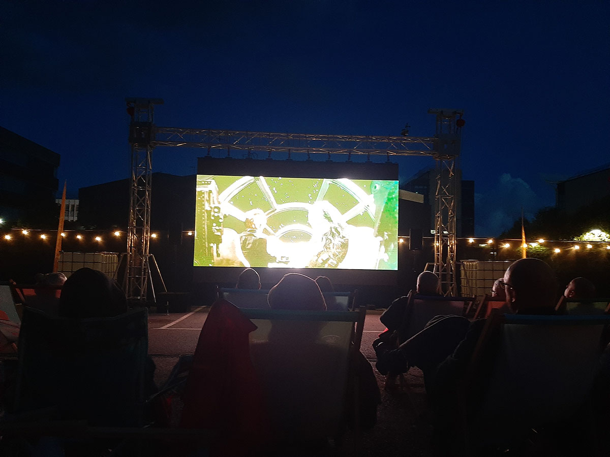 The scene was set beautifully—a large outdoor screen with Swansea Beach in the distance, the golden hues of the setting sun casting a warm glow on the horizon. It was the perfect backdrop for a timeless cinematic adventure: Star Wars (1977) Episode IV: A New Hope, written and directed by George Lucas. The anticipation was palpable as we settled in, our spirits high despite the unpredictable Welsh weather. Luckily, the rain held off, blessing us with a dry and crisp evening.